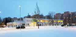 Description seriesЗдание решено в каркасно-панельных конструкциях индустриального изготовления. Хотя архитектор спроектировал плотный внутренний двор для здания, спроектировал свободную игровую зону с мебелью с инновационными изогнутыми углами перед бассейном по аналогии с Финляндией, большинство идей не осуществились. Рекомендуемые цвета фасада — от розового до светло-зеленого — были изменены на более благоприятные желтые и темно-красные цвета. Новшеством, заслужившим похвалу педагогов, стали крытые террасы, идущие по всей длине здания, которые на случай непогоды имеют преимущество перед типичными игровыми площадками, разбросанными по открытой площадке.